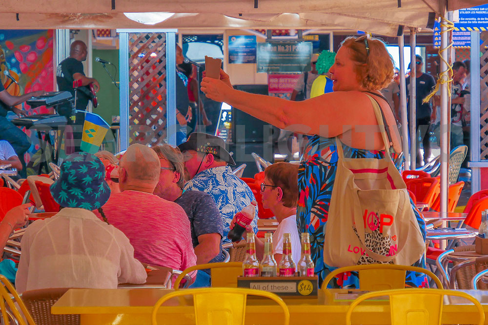 Tourists enjoying themselves at the Kingstown Cruise Ship terminal.